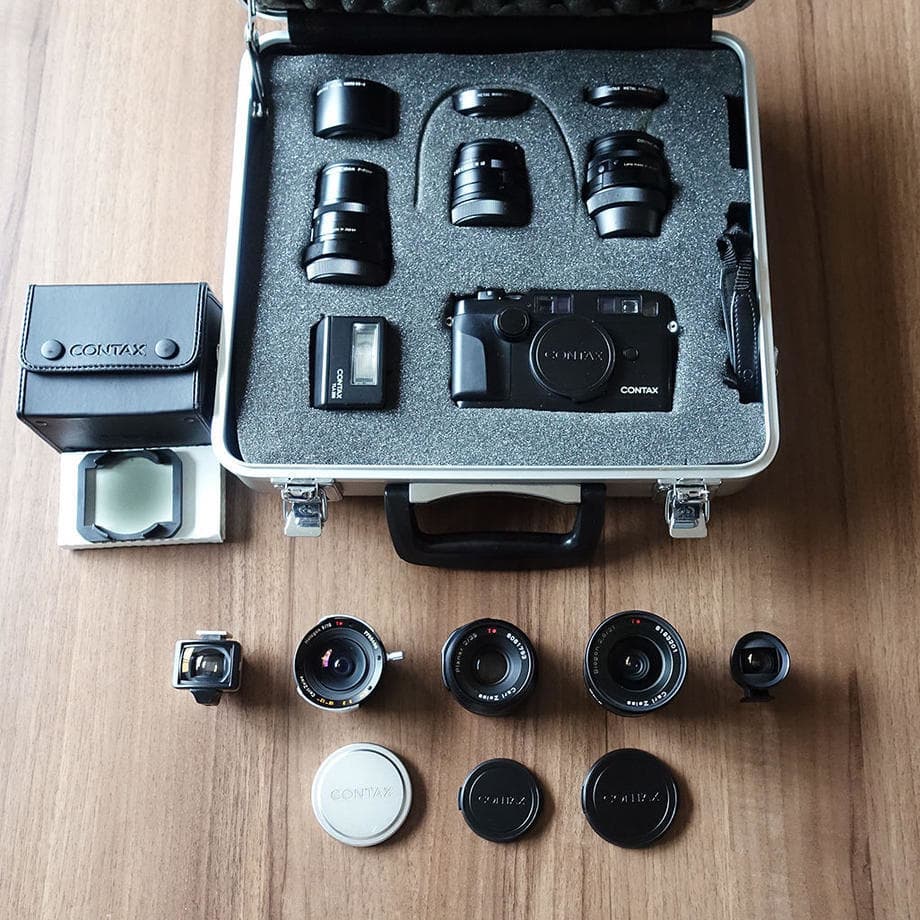 のブラックレンズ6本のレンズ純正のキャップやフィルターが付いたCONTAX G2ブラックのコンプリートです。この機会を逃すと二度と手に入らないかもしれません。スナップシューターの方は是非この機会に。
